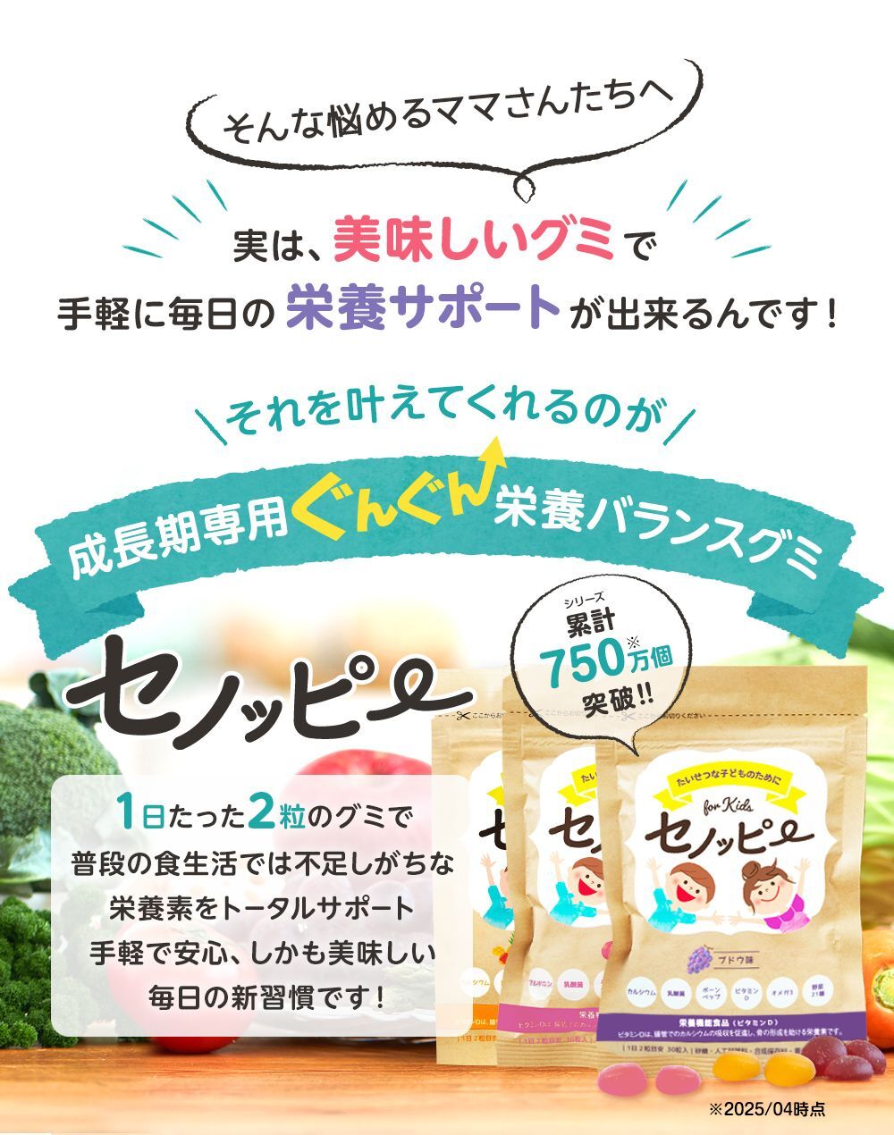 食事だけで成長期に必要な栄養素を摂るのは難しいから、「セノッピー」の力を借りるのは効率的な手段なんですね!